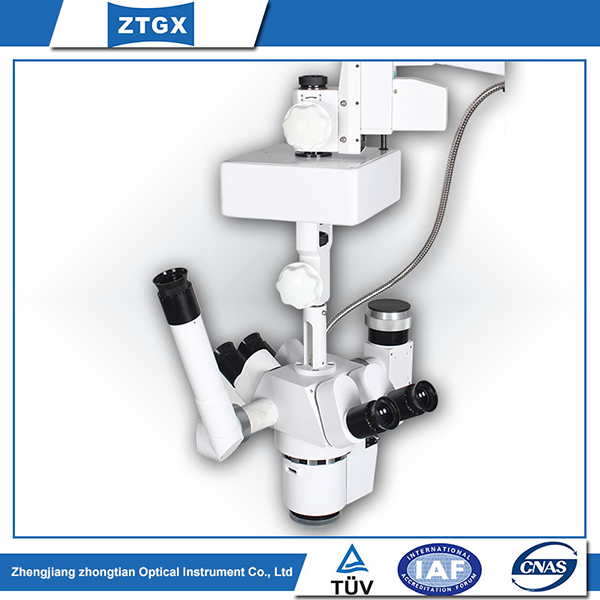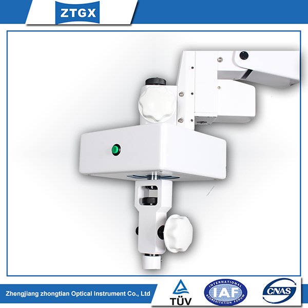 5、獨立的雙光源照明:鹵素燈采用4燈泡轉換,150W/15V德國進口燈泡,同軸冷光源照明,術面照度≧60000LX以上,可選配LED照明長壽命自然光,術面照度可達160000LX以上,雙光源均可切換。